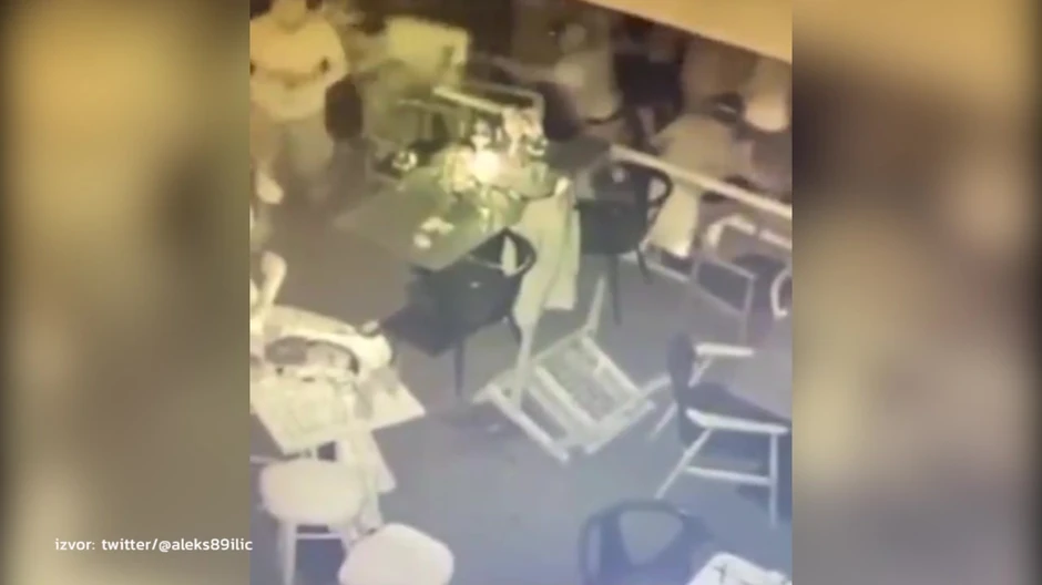 Na snimku se vidi grupa mladića, za koje se pretpostavlja da su pripadnici neke od navijačkih grupa, koja upada u baštu jednog od kafića i tuče goste na koje nailazi.