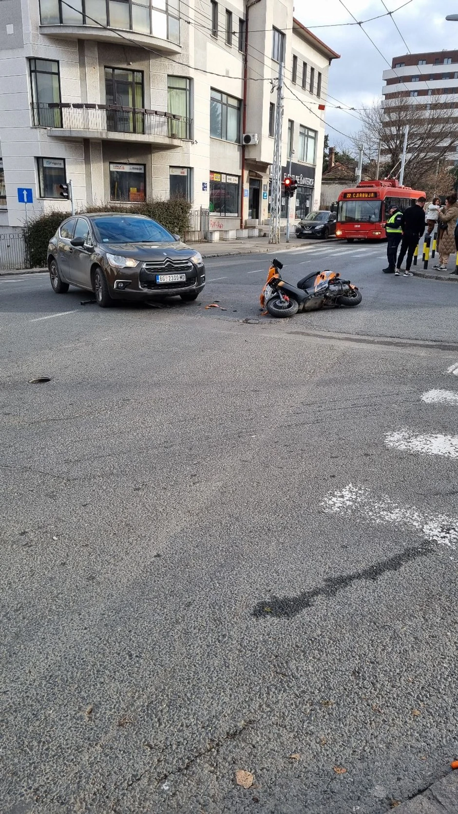 Na raskrsnici Ulice Grčića Milenka i Gospodara Vučića u Beogradu jutros se dogodila saobraćajna nezgoda kada je oboren dostavljač na motoru.