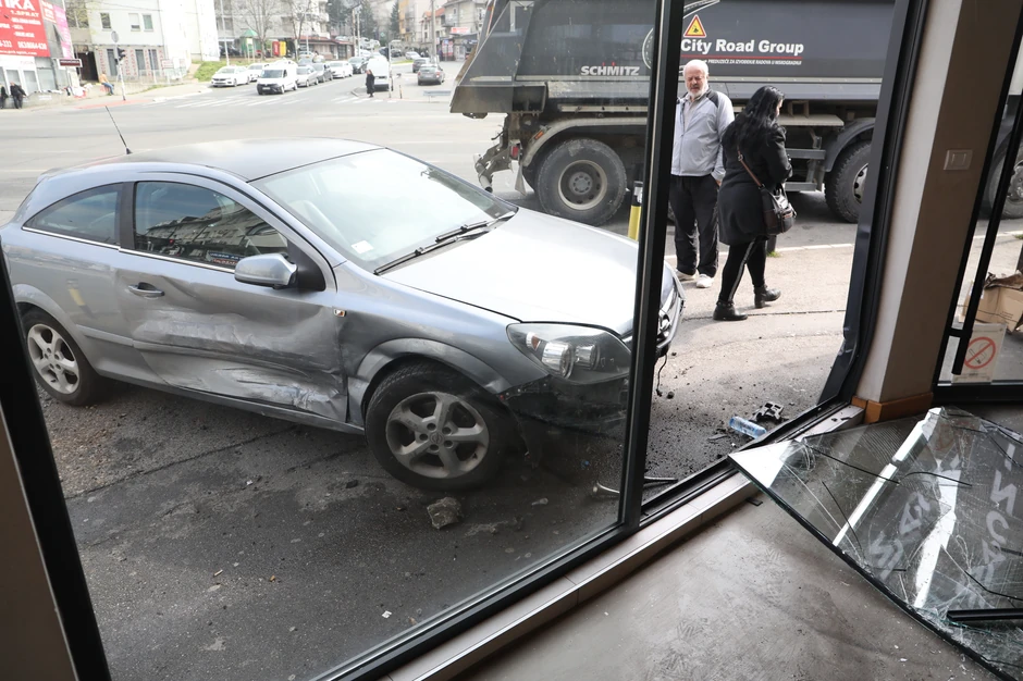 Saobraćajna nezgoda dogodila se na raskrsnici Trgovačke i Ilije Đuričića danas oko 9.20 sati, a prema nezvaničnim informacija,a tri osobe su povređene kada je automobil "opel astra" sleteo sa puta i udario u izlog pekare.