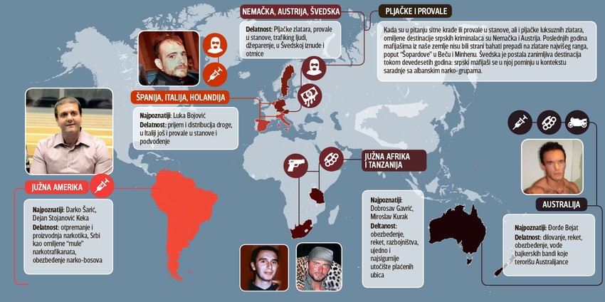 Od luka Urugvaja, preko ulica Amsterdama, nemačkih zlatara, italijanskih vila, do Tanzanije i australijskih drumova - naši se kriminalci svuda lako snađu.