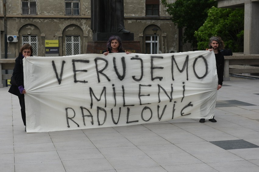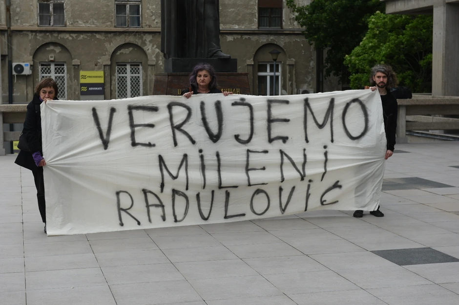 Kako smo pisali, Aleksić je nešto ranije stigao ispred suda, u pratnji advokata i supruge, a kao i u prethodnim suđenjama dočekala ga je grupa koja podržava Milenu Radulović, glumicu koja ga je optužila za seksualno zlostavljanje.