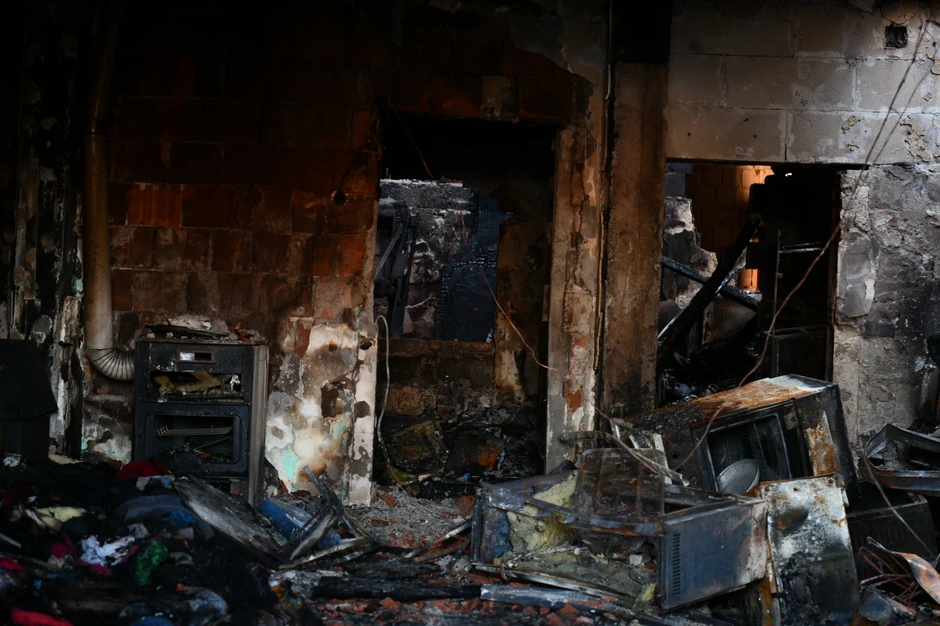Oba sprata kuće izgorela su u potpunosti. Ispreturane ugljenisane stvari po prostorijama, uništeni zidovi - od dva sprata kuće ostalo je samo zgarište.