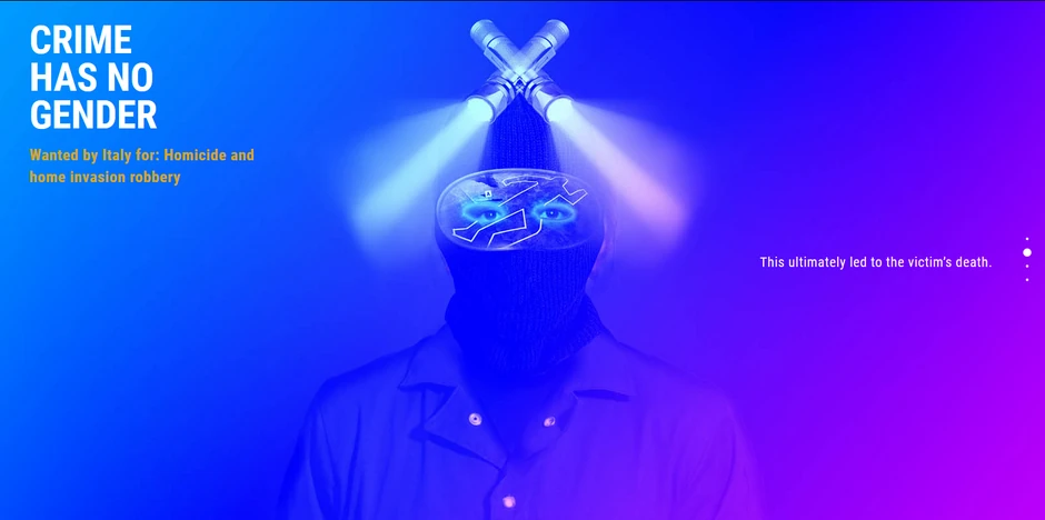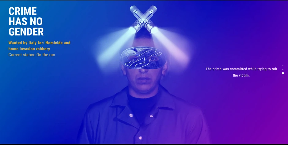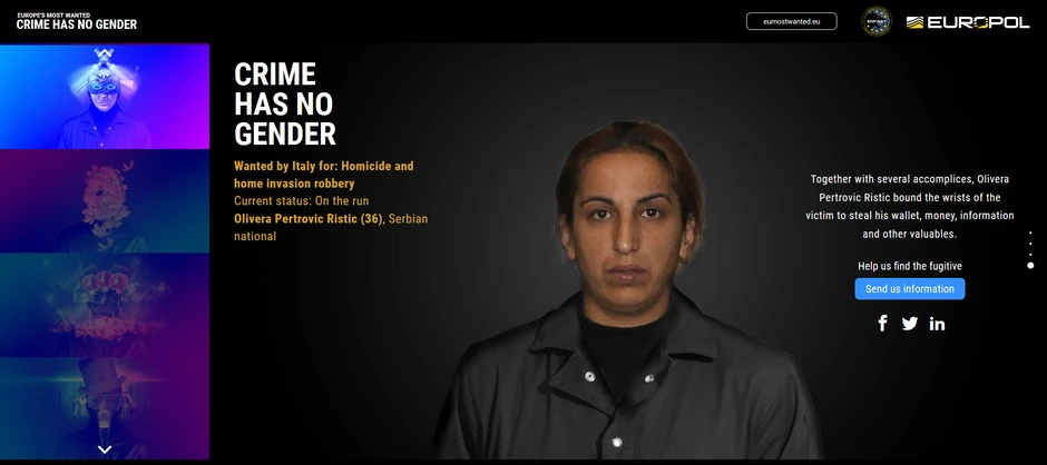 Sve članice Europola, 21 država, izabrale su po jednog od svojih najtraženijih begunaca kao predstavnika ove kampanje, a “čast” Italije brani upravo ova surova državljanka Srbije. Svim beguncima maska pokriva lice, a korisnici sajta treba da pogode pol kriminalca, dok delovi maske postepeno nestaju. U četiri koraka, postepeno se otkriva i krivično delo zbog kojeg je taj begunac tražen.