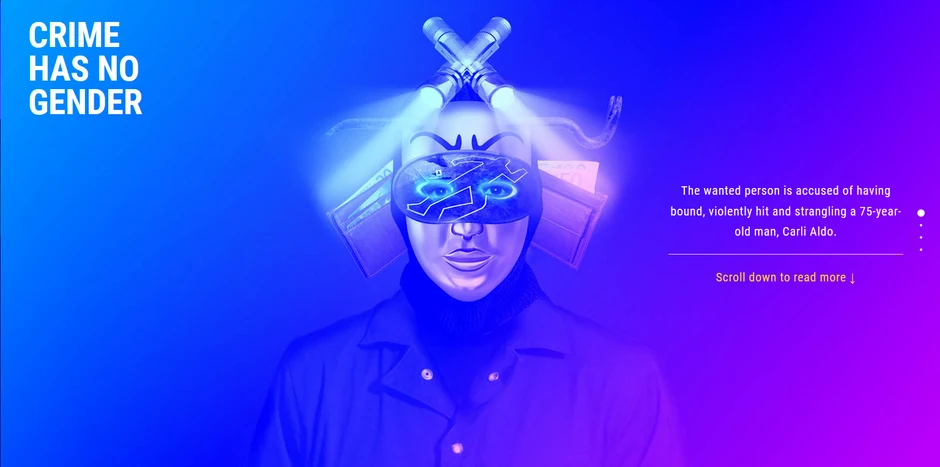 U kampanji "Kriminal nema pol" navedeno je da su žene podjednako sposobne da počine teška krivična dela kao i muškarci, te da se kriminalci oba pola, traže zbog zločina kao što su ubistva, trgovina drogom, prevare, krađe i trgovine ljudima.