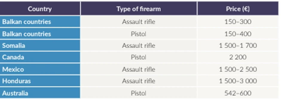 - Na primer, jurišna puška kupljena u Sjedinjenim Državama može košta od 500 do 600 evra, ali u severnom Meksiku može da košta između 1.200 i 1.600 evra, a ovo se može povećati kako se kreće prema jugu na oko 2.000 evra do 4.000 eura. Jugoistočna Evropa ima previše zaostalog oružja iz ratova koji su bili na području bivše Jugoslavije, ali i zbog prisustva u regionu značajnog industrija vojnog oružja. Kao rezultat toga, pištolji i jurišne puške se mogu nabaviti po znatno nižim cenama u istočnoj Evropi nego u delovima sveta- pojašnjavaju iz Globalne inicijative za borbu protiv transnacionalong organizovanog kriminala.