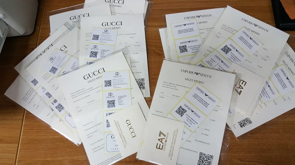 Među putnicima tog autobusa našao se i 51-godišnji Piroćanac u čijoj su torbici, koju je nosio oko struka, carinici pronašli sertifikate, nalepnice i bar kodove za razne modne detalje (marame, šalove, rukavice, čarape, šešire, kaiševe, nakit) svetski poznatih marki "GUCCI" i "EMPORIO ARMANI", čija je vrednost od 75 do 475 evra.