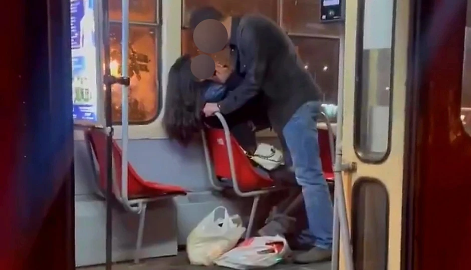 Na društvenim mrežama pojavila se fotografija na kojoj se vidi kako žena, po svemu sudeći, u strahu naginje glavu unazad na sedištu u tramvaju broj 9, dok se, za sada, nepoznati muškarac preko nje naginje i davi je.