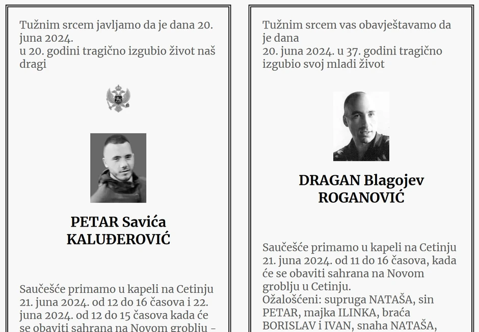 I za Petra Kaluđerovića koji je ubijen tokom jučerašnje eksplozije, njegovi najbliži takođe su objavili više čitulja kako bi se poslednji put oprostili od njega.