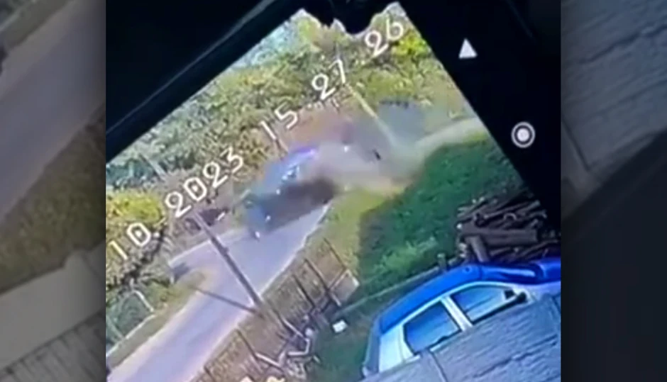 Na društvenim mrežama osvanuo je jeziv snimak udesa na kojem se vidi trenutak kada automobil udara u banderu i obara je na put.