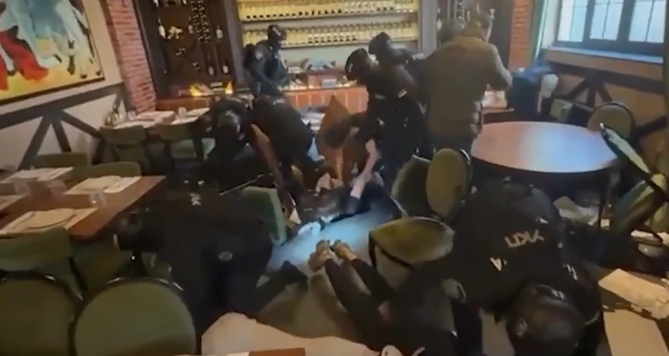 Policija je danas, kako se vidi na snimku, upala u restoran i naočigled gostiju uhapsila osumnjičene koji su sedeli za stolom i ručali.