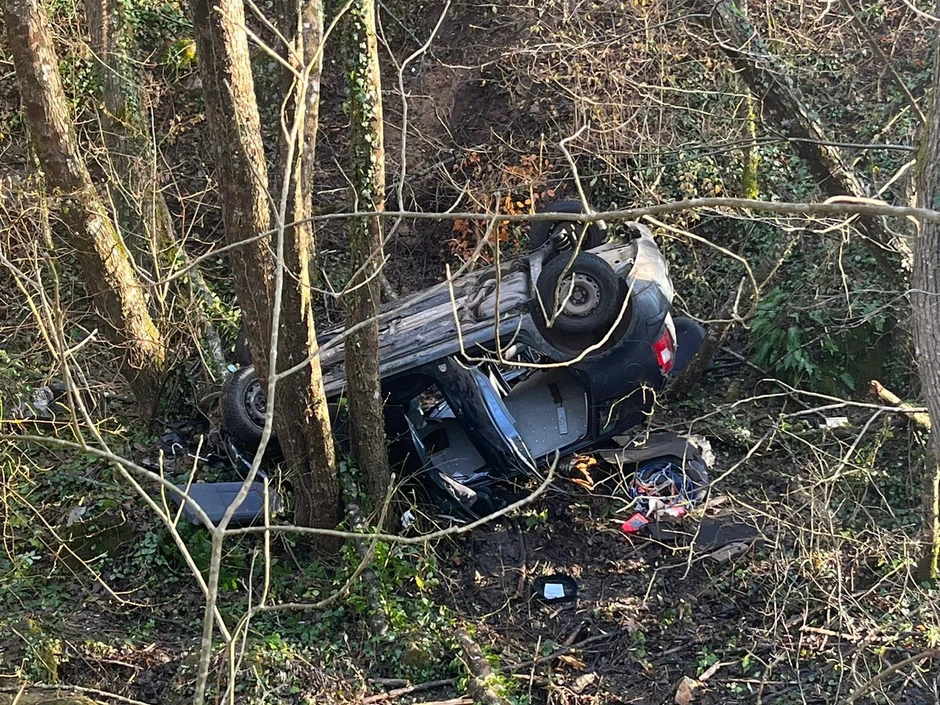 Automobil povređene žena završio je na samo par metara od vode, prevrnut na krov i poprilično smrskan.