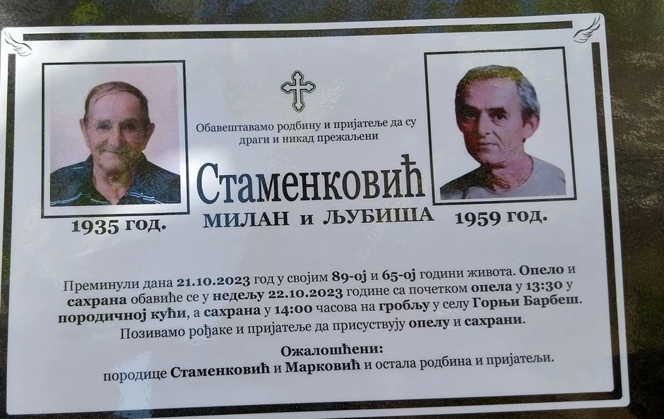 - Otac i sin su bili zajedno u šumi u okolini Gornjeg Barbeša, verovatno da bi dovezli drva za ogrev. Sinu je pozlilo u šumi pa je njegov otac krenuo traktorom po pomoć. Traktor se prevrnuo i on je nastradao u saobraćajnoj nesreći, dok je sin preminuo po svemu sudeći od posledica srčanog udara. Njegovo telo su našli u šumi, na mestu gde su bili zajedno - rekli su meštani.