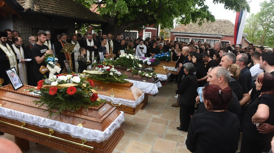Celo selo Malo Orašje došlo je da isprati pet tragično stradalih mladića - Marka M. (18), Aleksandra M. (17), N. M. (15), Lazara M. (20) i Nemanju S. (21) koja su ubijeni u masakru koji se dogodio 4. maja kada je automatske puške Uroš Blažić otvorio vatru i ubio osam a ranio 14 osoba.