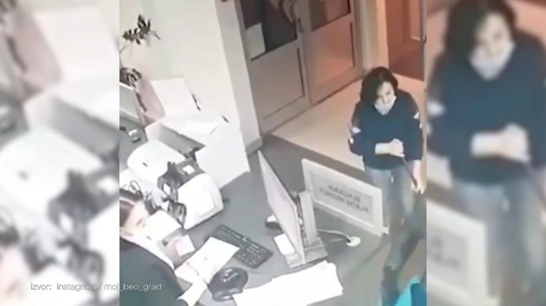 Sada se na društvenim mrežama pojavio snimak sa nadzorne kamere na kome se vidi kako muškarac sa zaštitnom maskom i plavim rancem u rukama ulazi u ekspozituru.