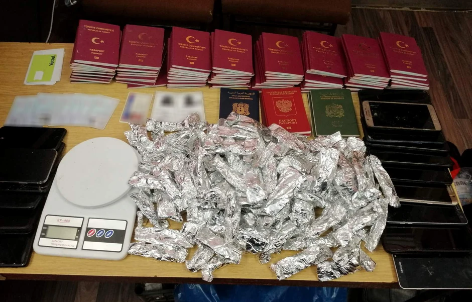 Policija je pretragom terena pronašla 20 komada hladnog oružja i drugih predmeta, ukupno 240 stranih ličnih dokumenata i putnih isprava, kao i 18 telefona.