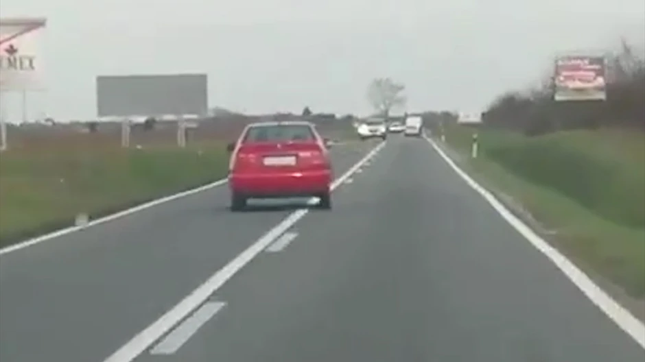 Snimak automobila koji na putu Sirig-Temerin kod Novog Sada "krivuda" po putu i umalo se sudara sa autom koji mu ide u susret, izazvao je burne reakcije na društvenim mrežama.