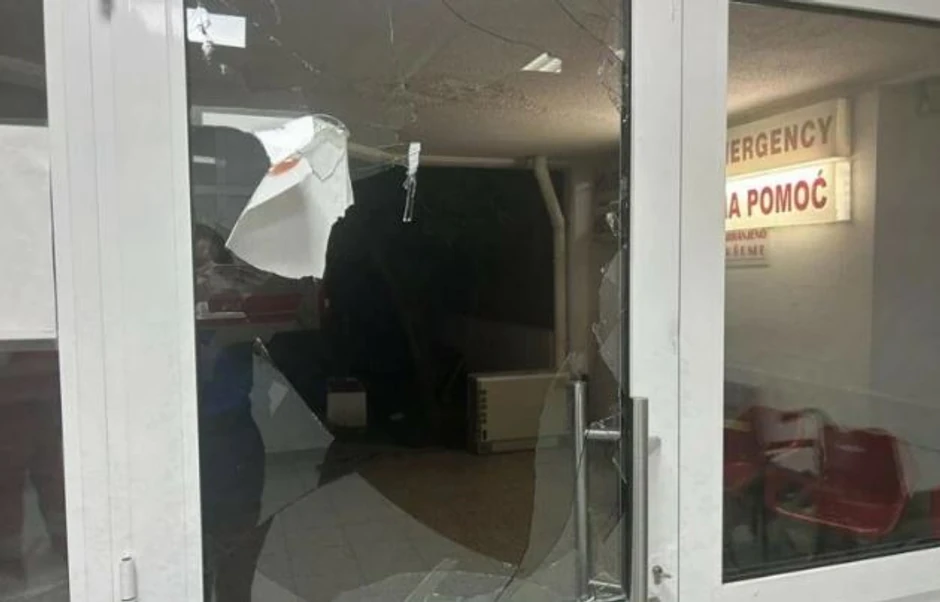 Utvrđeno je da je osumnjičeni prouzrokovao štetu na ulaznim vratima Hitne pomoći, razbijajući više stakala, i takođe je oštetio službeno vozilo.
