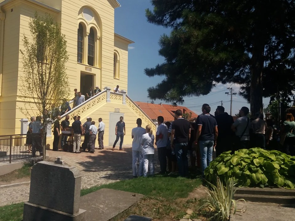Članovi porodice, među kojima su majka i brat, zagrljeni su i uplakani gledali u pravcu kovčega koji je polako spuštan u zemlju. Uprkos saznanju da im je otac ubio majku, troje maloletne dece ubijene žene nisu na sahrani.