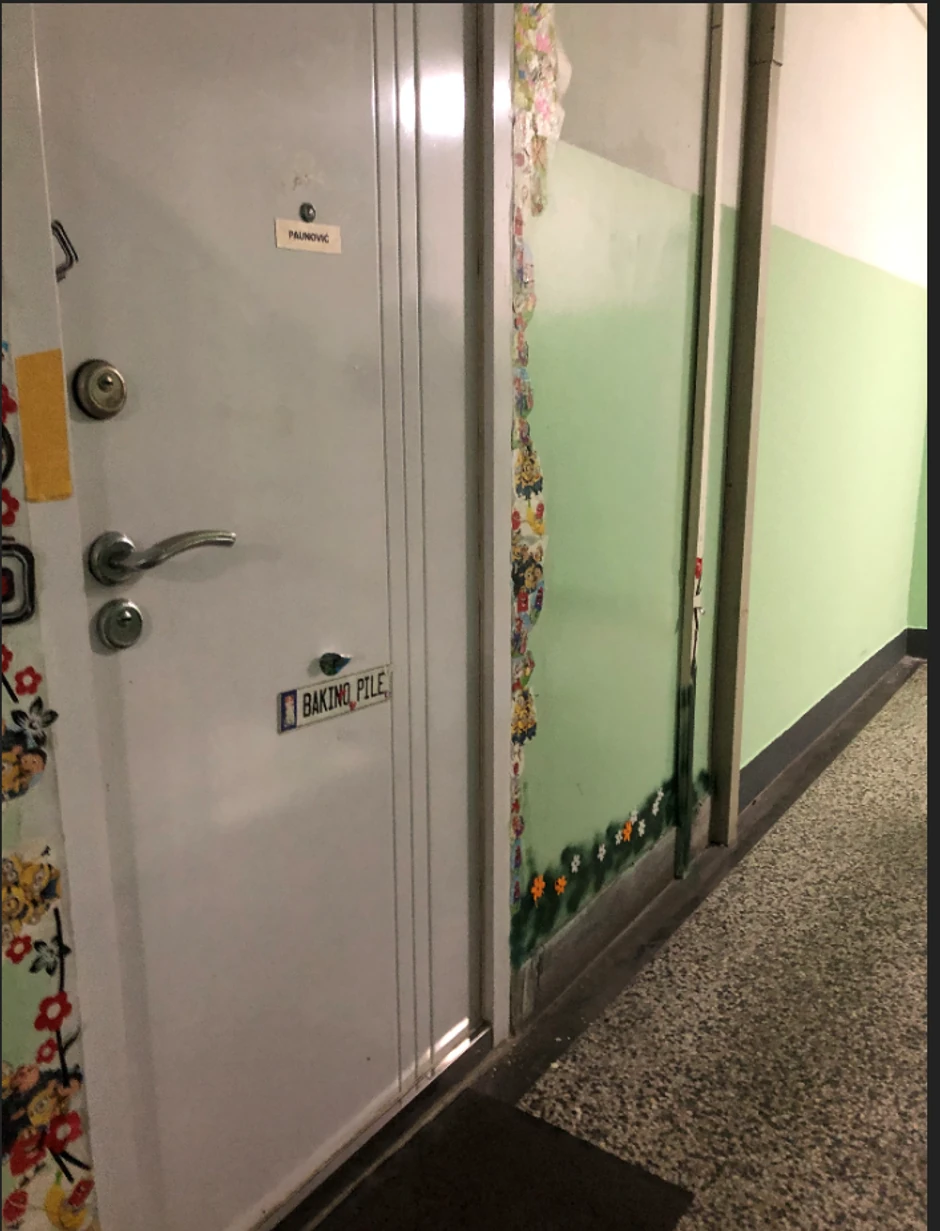 Na vratima stana bake preminulog dečaka novinare je zatekao potresan prizor. Vrata su ukrašena razločitim nalepnicama likova iz crtanih filmova, a nalepnica na kojoj piše "Bakino pilo", sada kida dušu svima koji kraj ovog stana prođu.