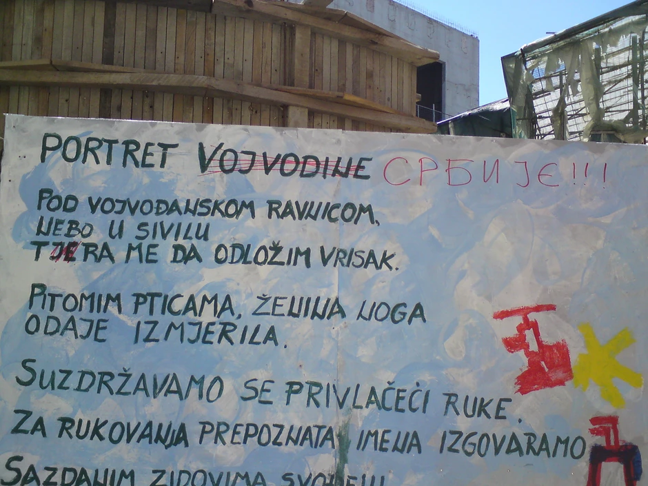 Jakovljevićeva je novinarima ispričala da je videla nepoznatog muškarca kako škraba po platnu na kojem su lokalni umetnici tokom vikenda slikali, u akciji koju je organizovao Kabinet gradonačelnika, s ciljem da se skrene pažnja na to da se ograda oko pozorišta koristi za isticanje neprikladnih poruka, čime se od te ograde pravi ruglo u centru grada.