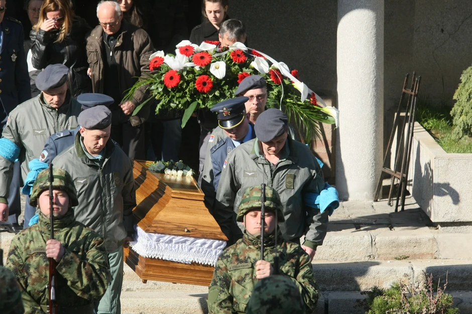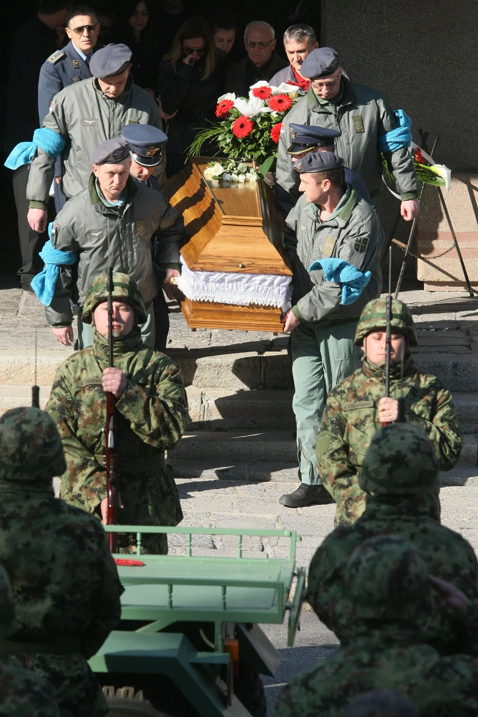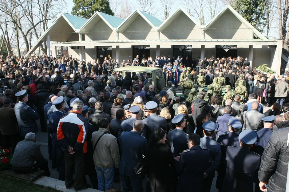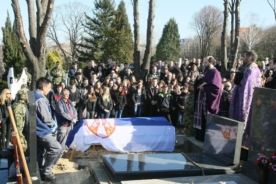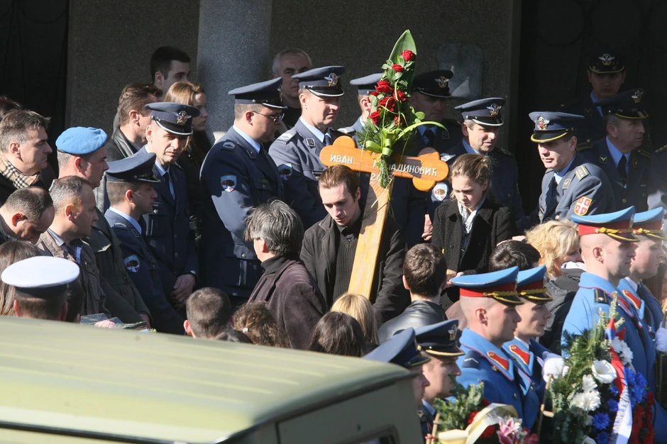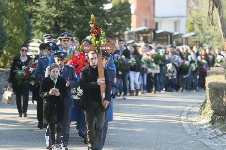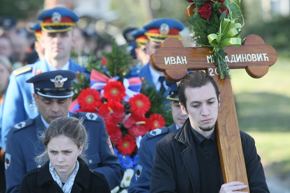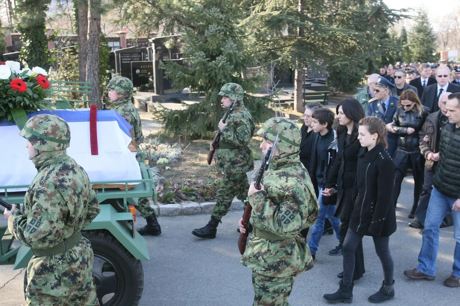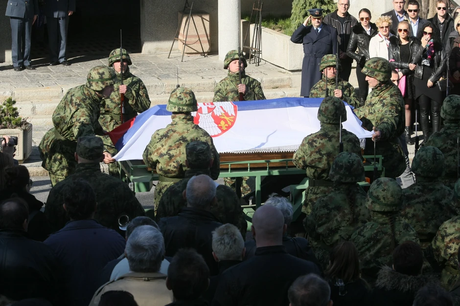 Na Centralnom groblju u Beogradu, porodica, prijatelji i kolege opraštaju se od zastavnika Ivana Miladinovića.