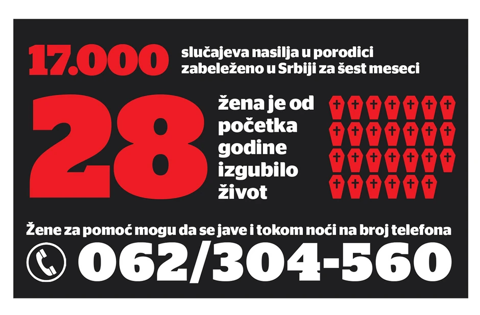 Za šest meseci u Srbiji je zabeleženo 17.000 slučajeva nasilja u porodici, a 27 žena je od početka godine izgubilo život.