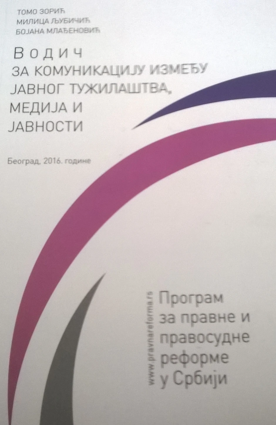 Autori priručnika su sekretar Državnog veća tužilaca Tomo Zorić, Kooridnator za spovođenje komunikacione strategije i zamenik javnog tužioca Milica Ljubičić i novinar RTS-a Bojana Mlađenović.