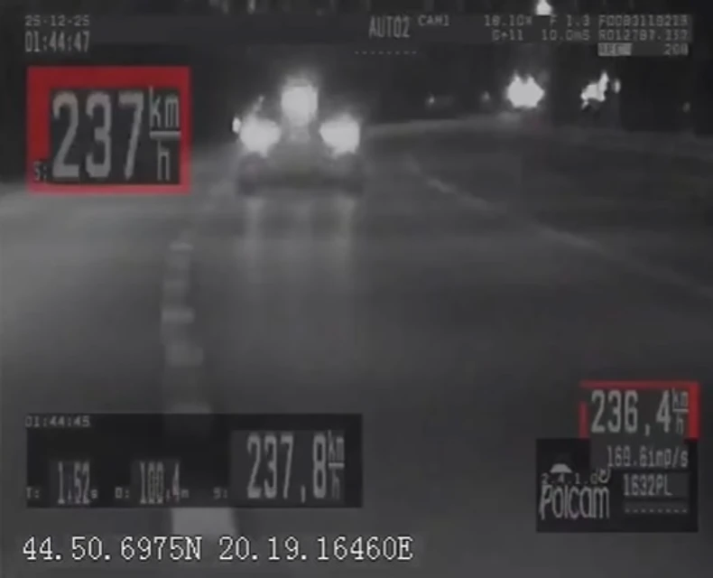 On se, prema saopštenju MUP-a, kretao brzinom od 237,8 kilometara na čas, na delu moto-puta gde je brzina ograničena na 100 kilometara na čas.