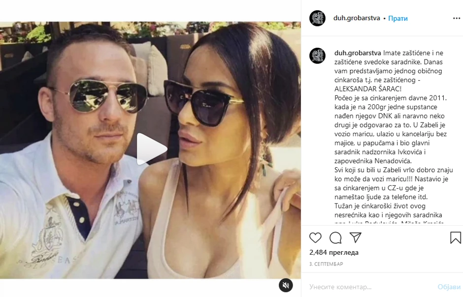 Pre toga na Instagramu je otvoren i profil "Šarac cinkaroš", koji je zaključan i ima 37 postova.