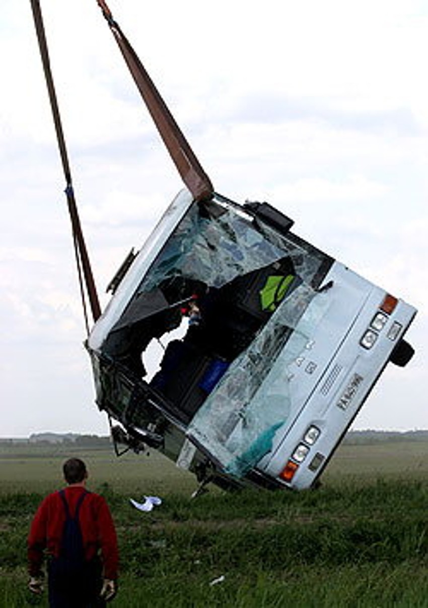 Policija je juče obezbeđivala put Kovin-Pančevo, a na mestu nesreće je stajao autobus prevrnut na bok, na kome su sva stakla bila polomljena. Vatrogasna ekipa koja je došla morala je da podigne autobus pomoću velikog krana, što je potrajalo skoro sat i po. Za to vreme su novinari i vozači kamiona, koji su stajali pored, udaljeni od puta, jer je postojala opasnost da se autobus tokom podizanja otkači.