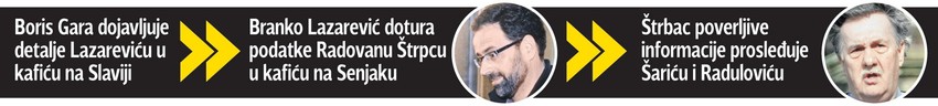 Prema izjavi jednog od okrivljenih, Štrbac je Lazareviću služio kao veza s Radulovićem i Šarićem. Lazarevićevi kontakti s Radulovićem, s kojim ga je, navodno, upoznao Ivica Dačić, datiraju od 2008. godine. Već prilikom drugog njihovog susreta, Radulović je zatražio od Lazarevića da ga obavesti da li su braća Darko i Duško Šarić pod istragom, tj. da li je za njima raspisana potraga.