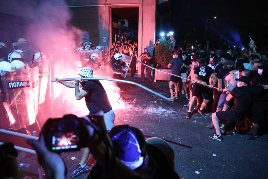 U Novom Sadu su 13. avgusta učesnici protesta na koji su pozvali studenti u blokadi i tzv. zborovi napali pripadnike policije, kao i pristalice SNS pirotehničkim sredstvima, kamenjem i drugim predmetima, a tada su i demolirane stranačke prostorije SNS na Bulevaru oslobođenja.