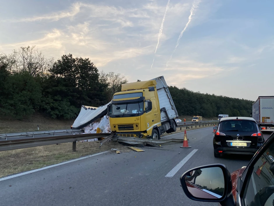 Dve osobe su povređene u saobraćajnoj nesreći koja se dogodila danas kada je šleper udario u rampu na auto-putu, u smeru ka Nišu, usled čega se prevrnuo, a sve iz komore je rasuto po putu.