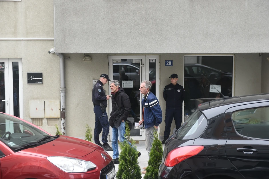 Sestra žrtve je izašla iz zgrade uplakana i potresena, u pratnji inspektora.