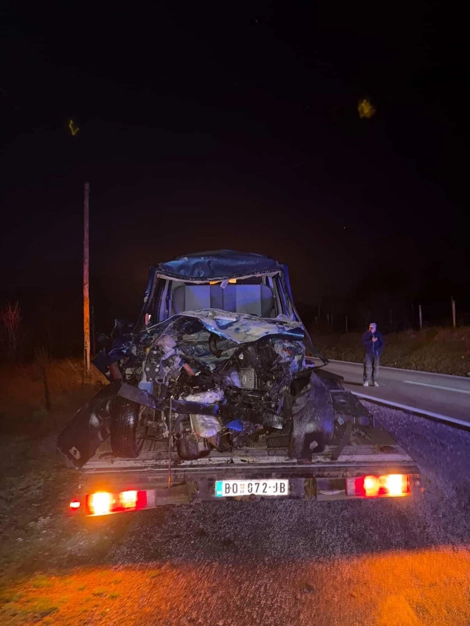 On je udario direktno u teretno vozilo, a od siline udara, automobil je potpuno smrskan.