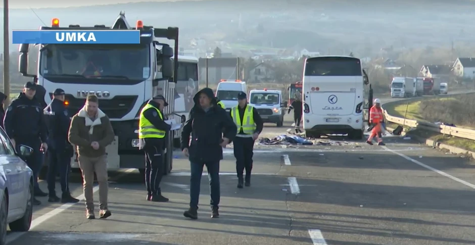 Teška saobraćajna nesreća dogodila se jutros u Umki oko 6.20 sati kada je došlo do direktnog sudara dva autobusa pri čemu je povređeno 56, a poginulo dvoje ljudi.