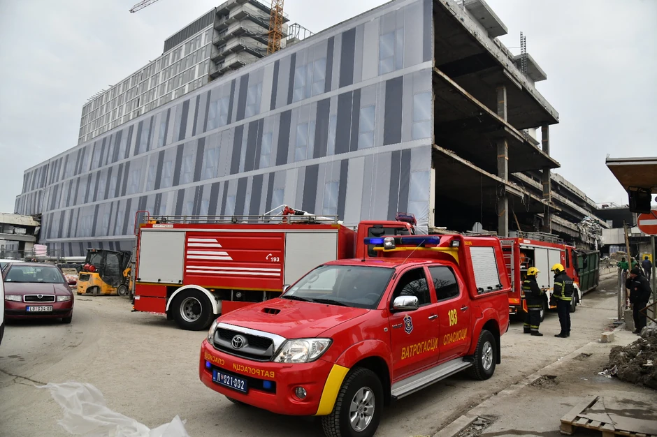 Navodi se da su se radnici sa gradilišta novog dela Kliničkog centra sklonili nakon izbijanja požara i da u incidentu nije bilo povređenih.