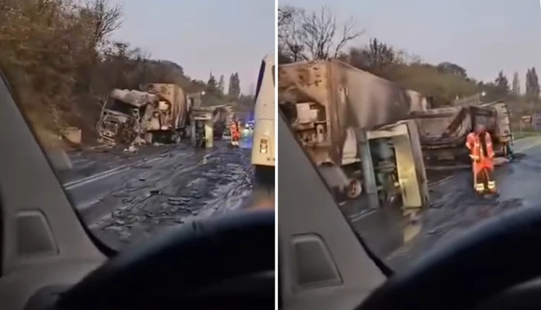 Kako se može videti na snimcima objavljenim na Instagram stranici 192_rs, kamioni koji su učestvovali u udesu su izgoreli.