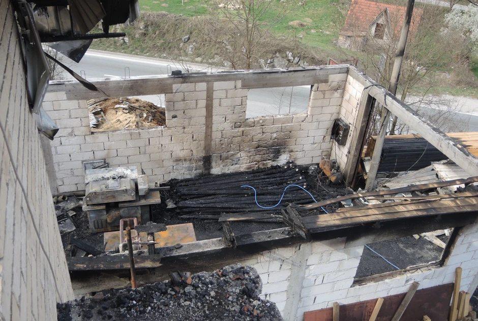 Malo kasnije planulo je skladište sa piljevinom pred stolarskom radionicom Andrijinog oca Aleksandra, koji kaže da je požar izazvala varnica sa bandere posađena tik uz radionicu.