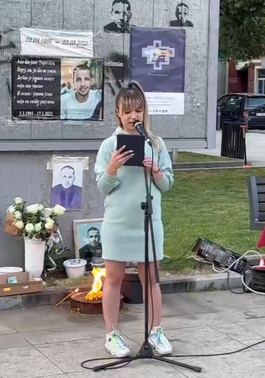 Ovim potresnim rečima Nađa Đorđević, drugarica tragično natradalog Alekse Stojmenovića (26), obratila se okupljenima u centru Aleksinca, na mirnom skupu kojim je obeležena godišnjica pogibije ovog mladića. Aleksa je, kako je "Blic" pisao, nastradao 16. maja 2021. godine u masovnoj tuči na jednoj rođendanskoj proslavi u kafani "Oaza" u tom gradu a za nanošenje kobnog udarca od kojeg je preminuo osumnjičen je O. P. (19) iz tog grada, dok se još trojica mladića sumnjiče za učstvovanje u tuči.