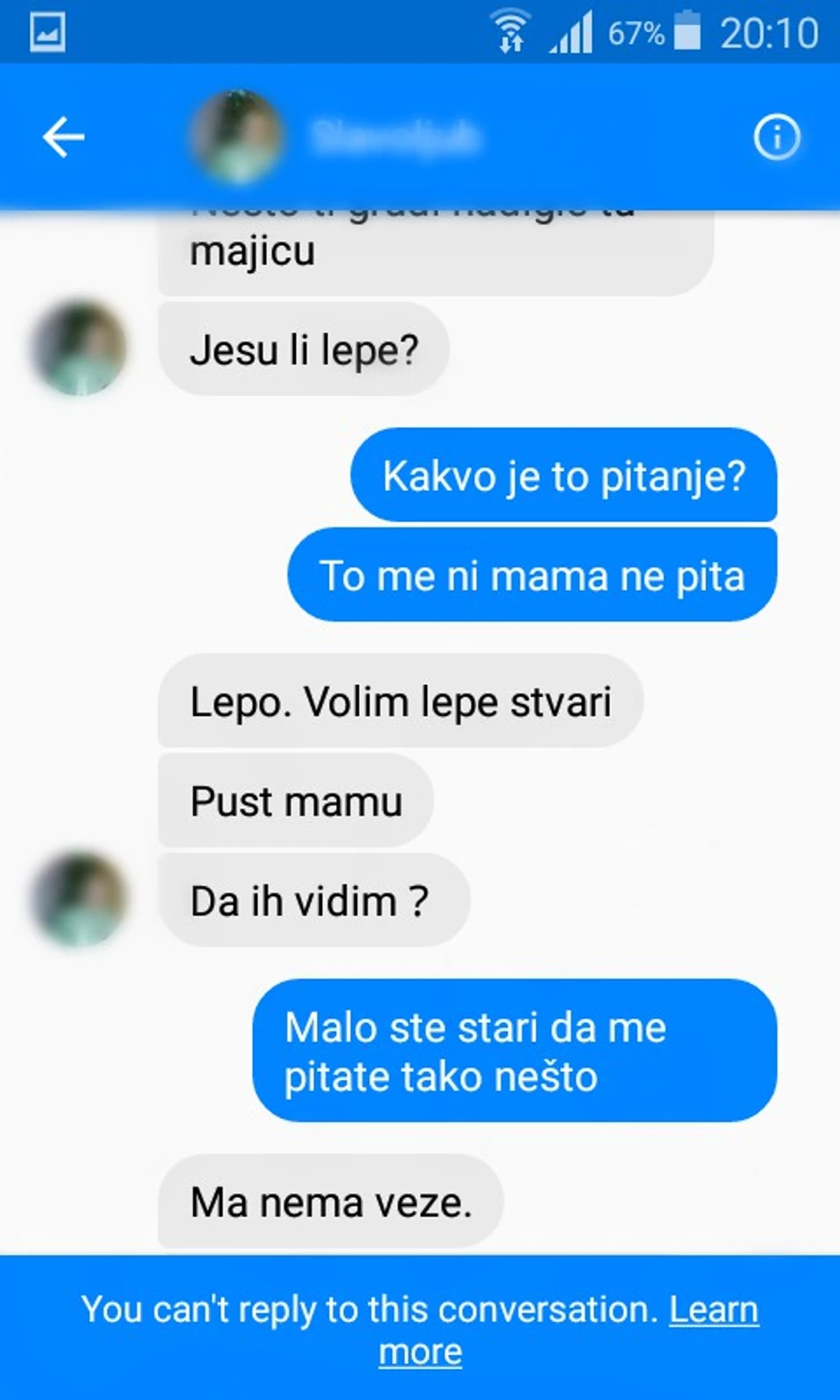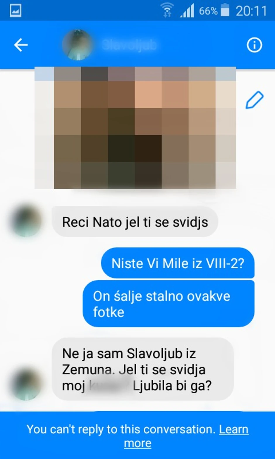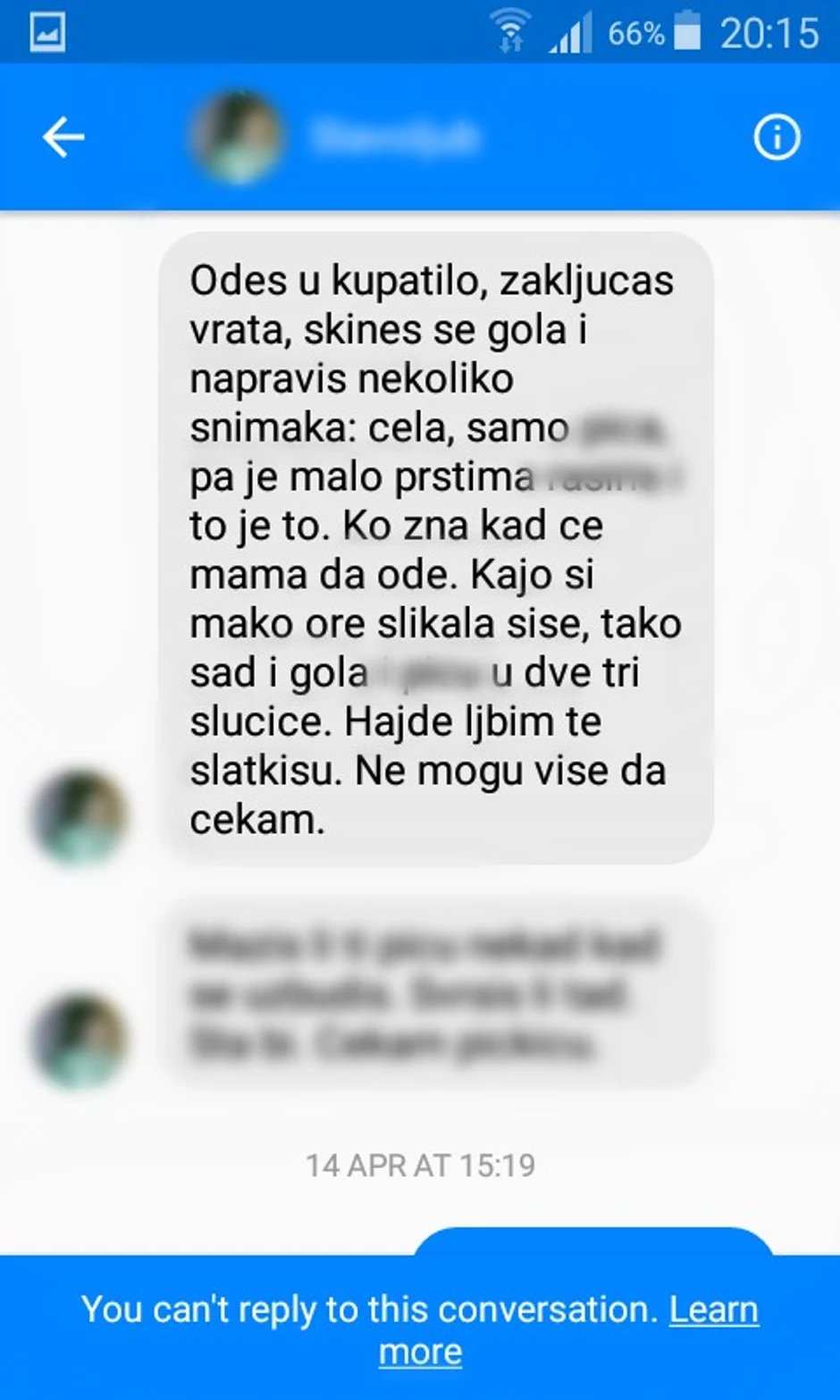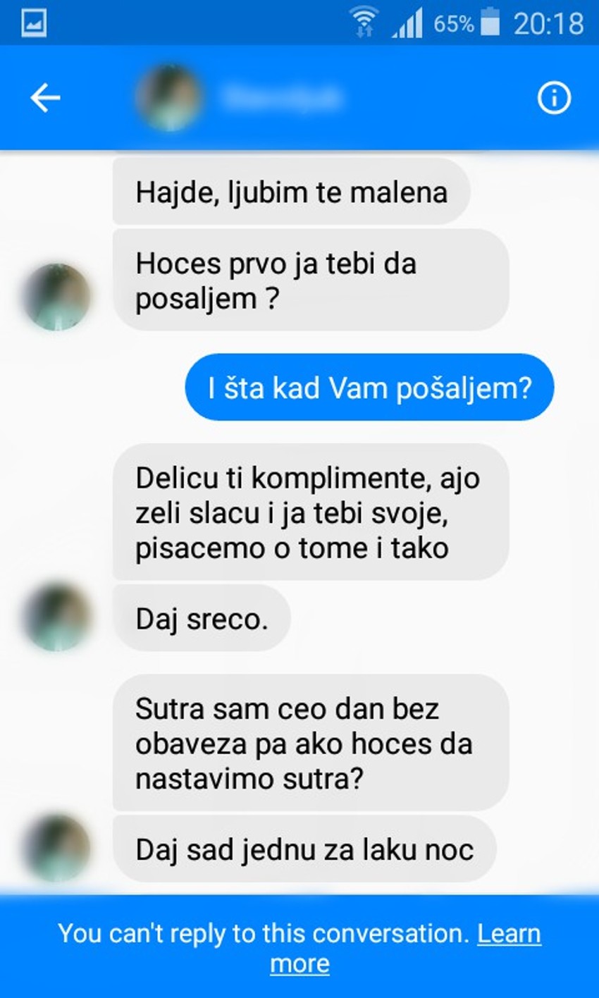 Sudeći po objavljenim porukama Slavoljub M. je prvi otpočeo konverzaciju sa trinaestogodišjom devojčicom dajući joj na počeku dopisivanja komplimente, a potom je njegovo slanje poruka prešlo u žestoko sekusualno uznemiravanje budući da joj je slao fotografije svog polnog organa nagovarajući nju da se fotografiše naga i pošalje mu te slike.