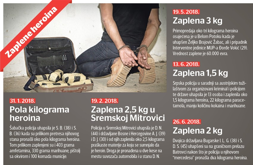 Transport nekoliko kilograma heroina kao i kokaina veoma je ozbiljan posao, tvrde stručnjaci, a tržište za najozbiljnije kriminalne grupe ne bi trebalo da prelazi količinu od pet do deset kilograma obe droge. Sudeći po hapšenjima srpske policije, dileri su najčešće pali sa jednim do tri kilograma heroina. Razlog je, prema rečima našeg sagovornika, što u Srbiji nemaju kome da prodaju veće količine.