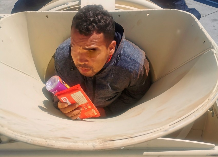 U saopštenju se dodaje da su se samo sat vremena kasnije carinici suočili sa još jednim neobičnim pokušajem skrivanja, kada su se trojica migranata uvukla u mešalicu za beton.
