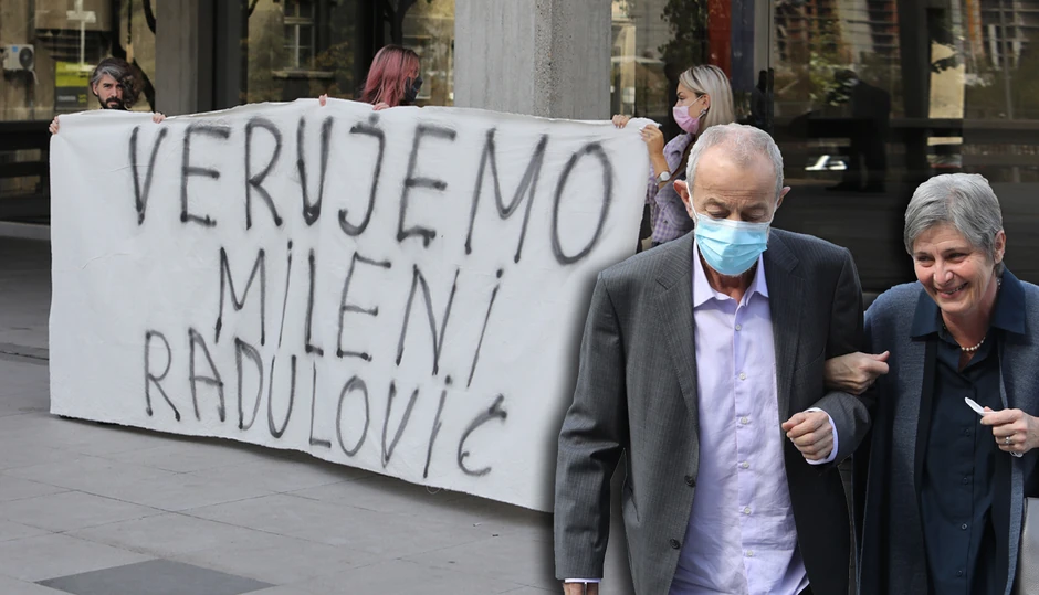 Ispred suda okupila se i manja grupa mladih koji su razvukli transparent na kom piše: "Verujemo Mileni Radulović". Nakon odlaganja ročišta dobacivali su mu "silovatelj, silovatelj".