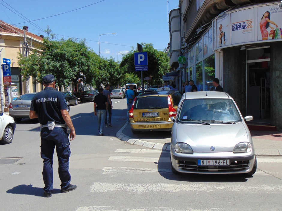 Nišlijka R.M. (66) povređena je danas oko 11 časova u udesu automobila marke „fijat seicento“ i taksi vozila marke „volvo“ na raskrsnici ulica Cara Dušana i Pop Luke Lazarevića u centru Niša.