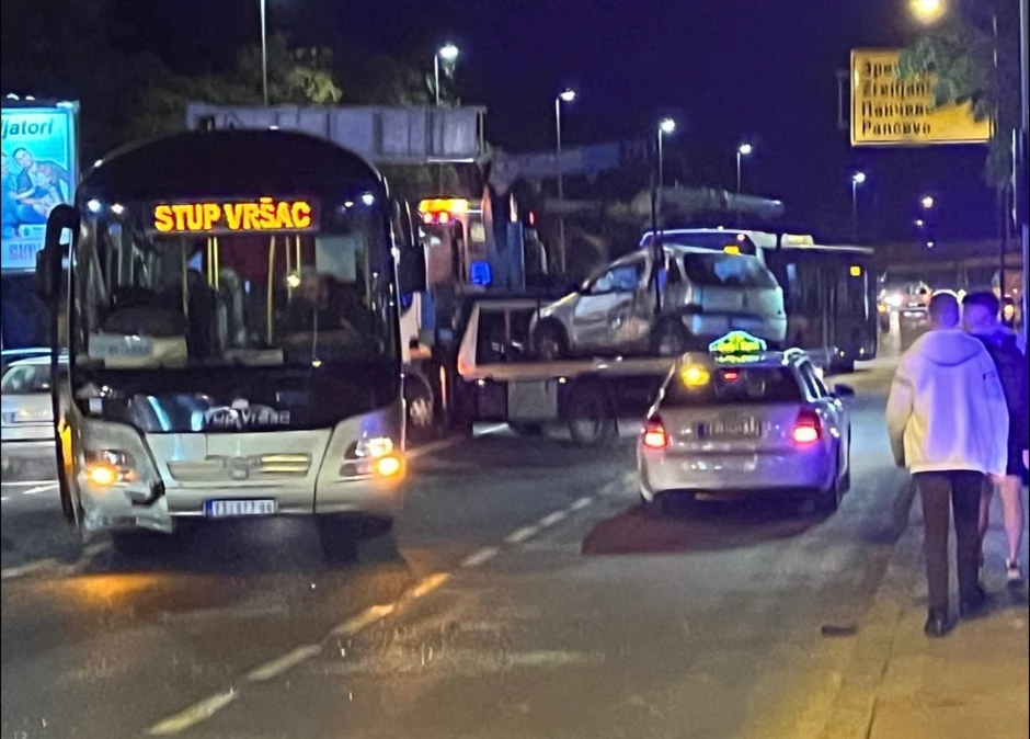 Dve osobe povređene su u teškoj saobraćajnoj nesreći koja se dogodila večeras u Bulevaru Despota Stefana kod Pančevačkog mosta, kada su se sudarili autobus i putnički automobil.