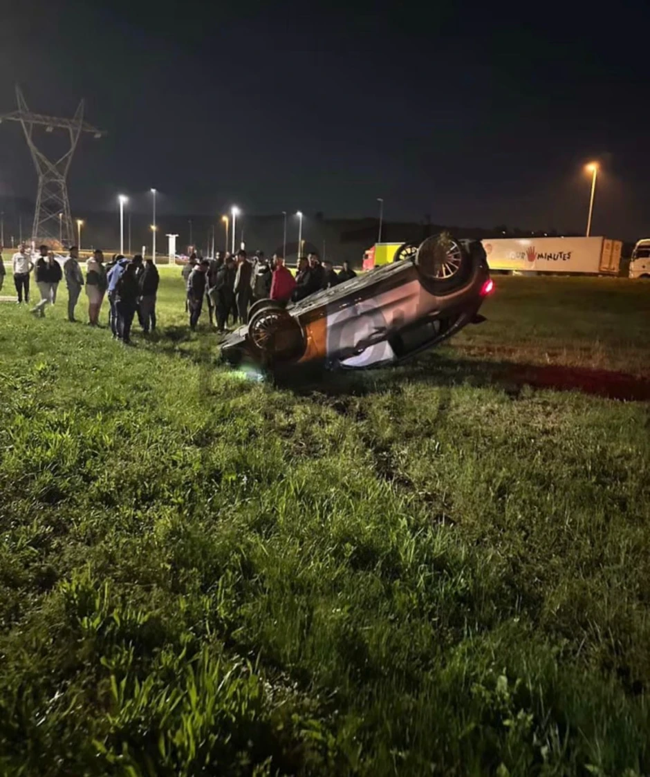 Automobil je sleteo s puta i prevrnuo se na krov.