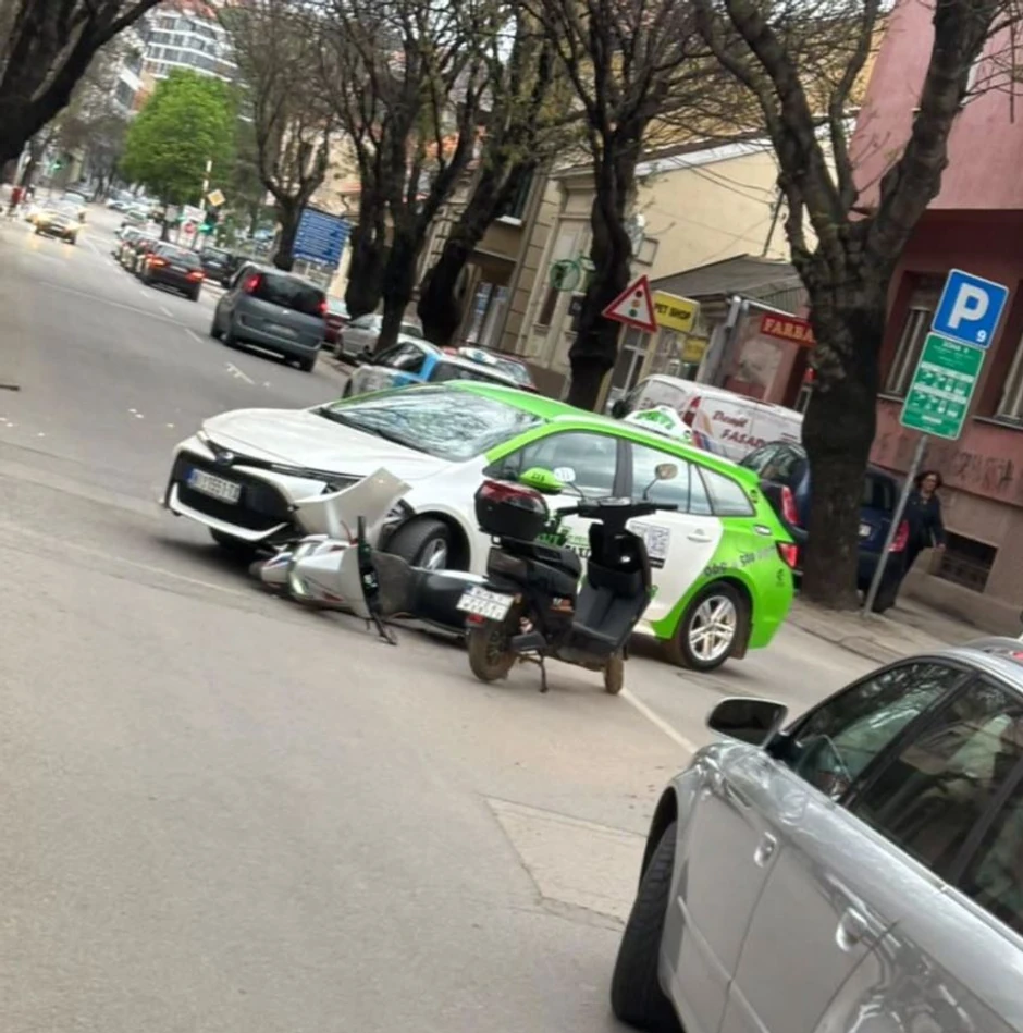 Kako se može videti na fotografiji, sudarili su se motociklista i taksi vozilo.