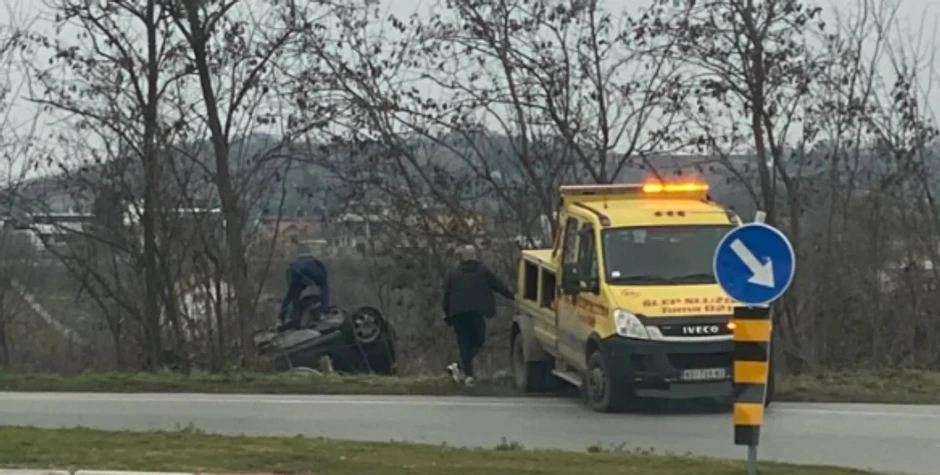 Kako se vidi na fotografiji objavljenoj na Instagram stranici 192_rs, automobil je sleteo s puta i okrenuo se na krov.