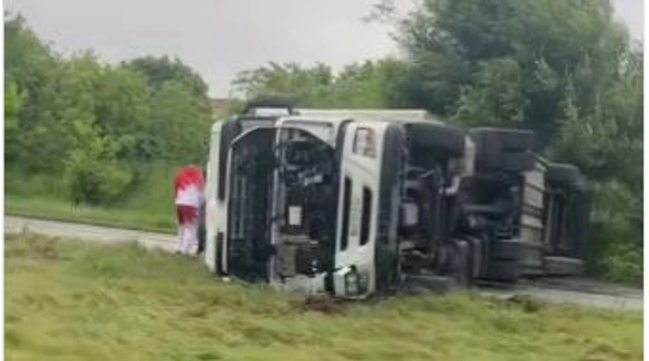 Jedan kamion se prevrnuo na novosadskom auto-putu u Zemun polju, u smeru ka Beogradu.